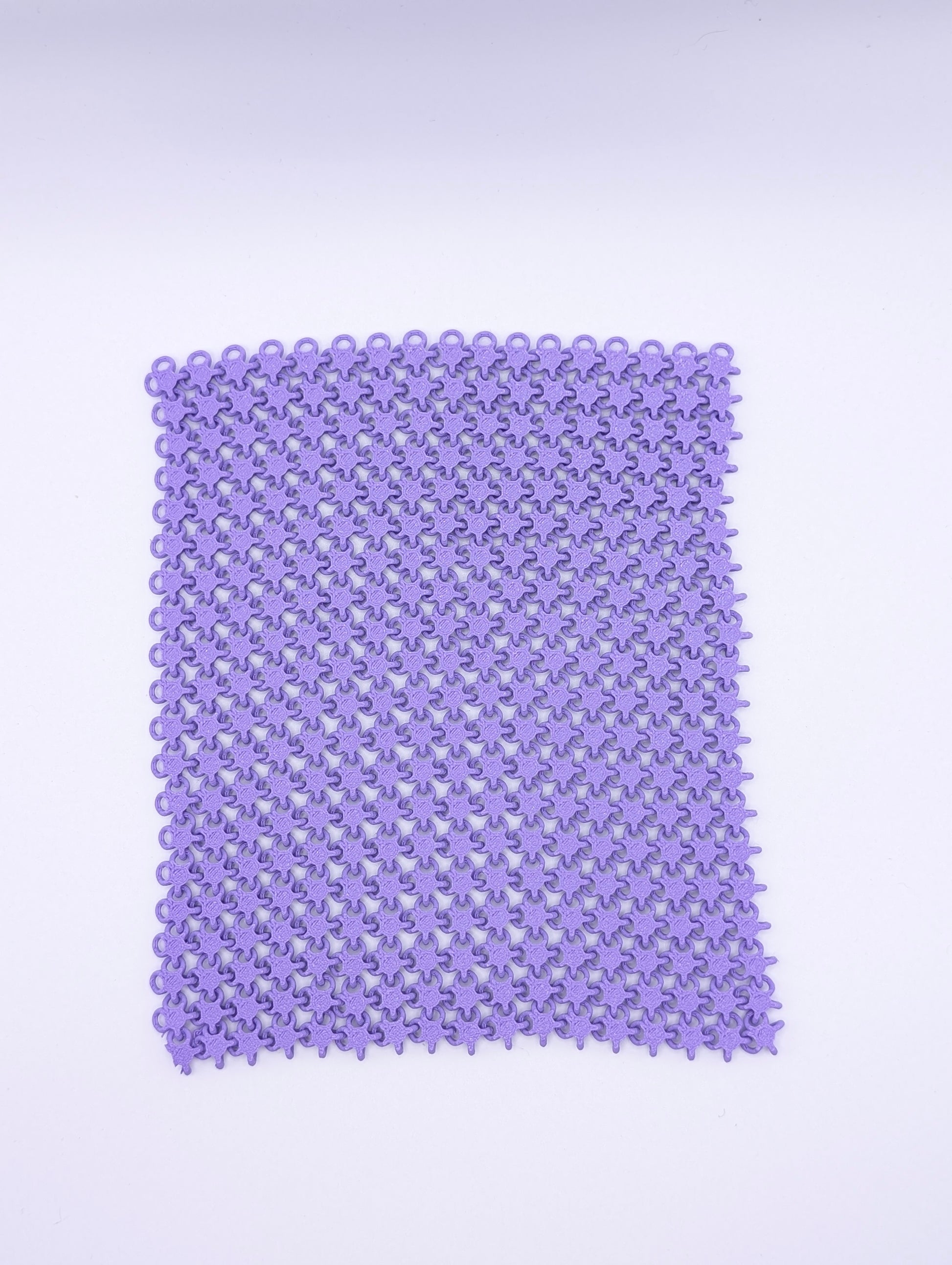 Discover endless fun with our Fabric Chainmail mini sheet! This 3D printed fabric feels smooth and folds easily, making it a perfect fidget toy to keep your hands busy. Its unique chainmail design offers a playful tactile experience that's both satisfying and entertaining. Great for stress relief or just goofing around, this mini sheet is a must-have for anyone who loves to play and explore textures.